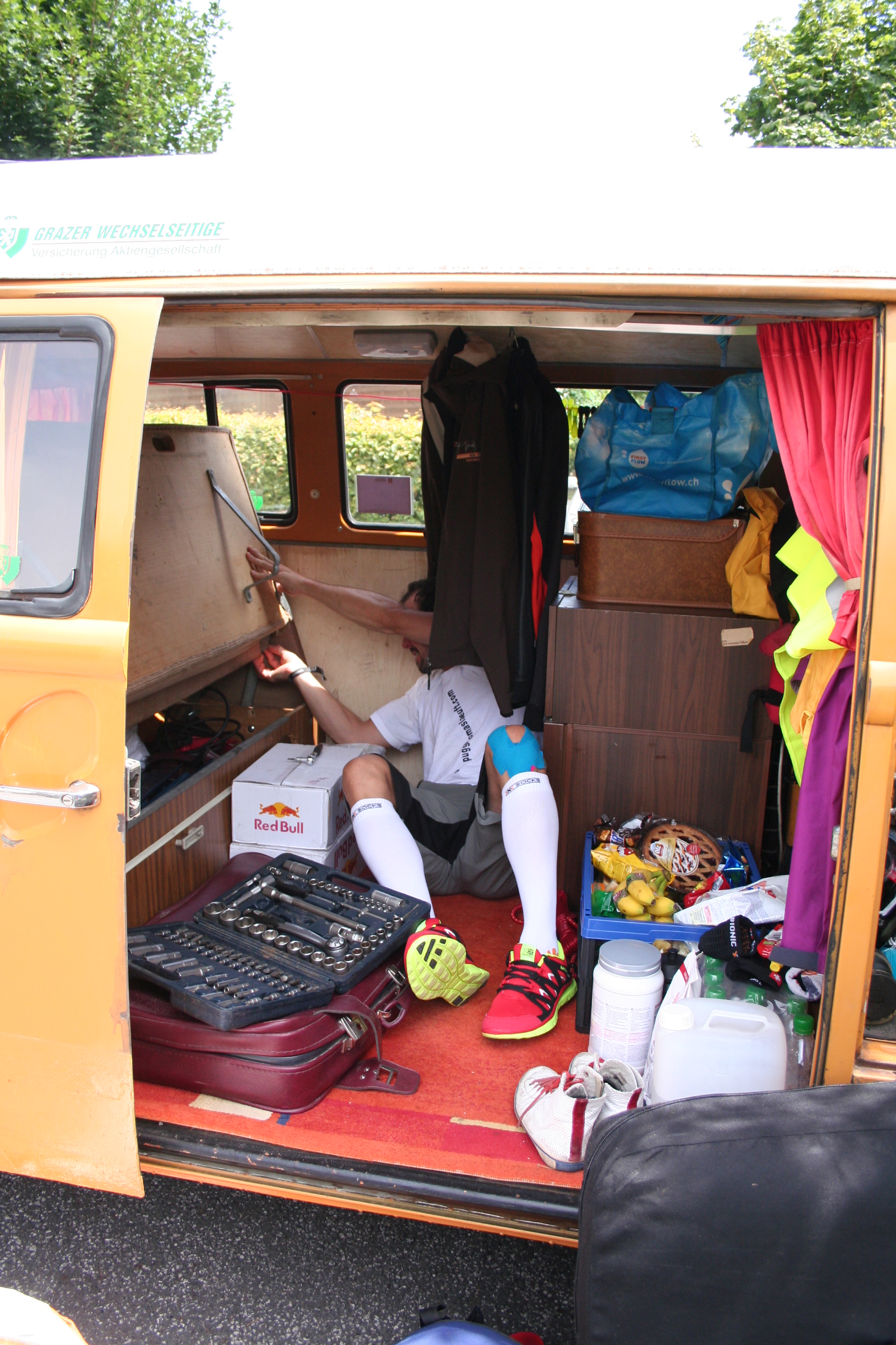 Heute musste in der Mittagszeit der Bus gewatet werden – grad heute muss das Bett halten, wo wir doch zum ersten Mal im Bus übernachten.